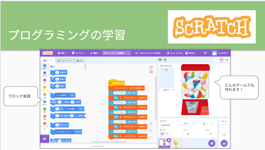 ブラウザから無料で利用できる「スクラッチ」を使い、プログラミングおよび「情報」科目の基礎知識を学ぶことができます。
