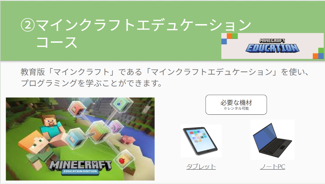 ※マインクラフトエデュケーションコースでは別途年会費が必要となります。